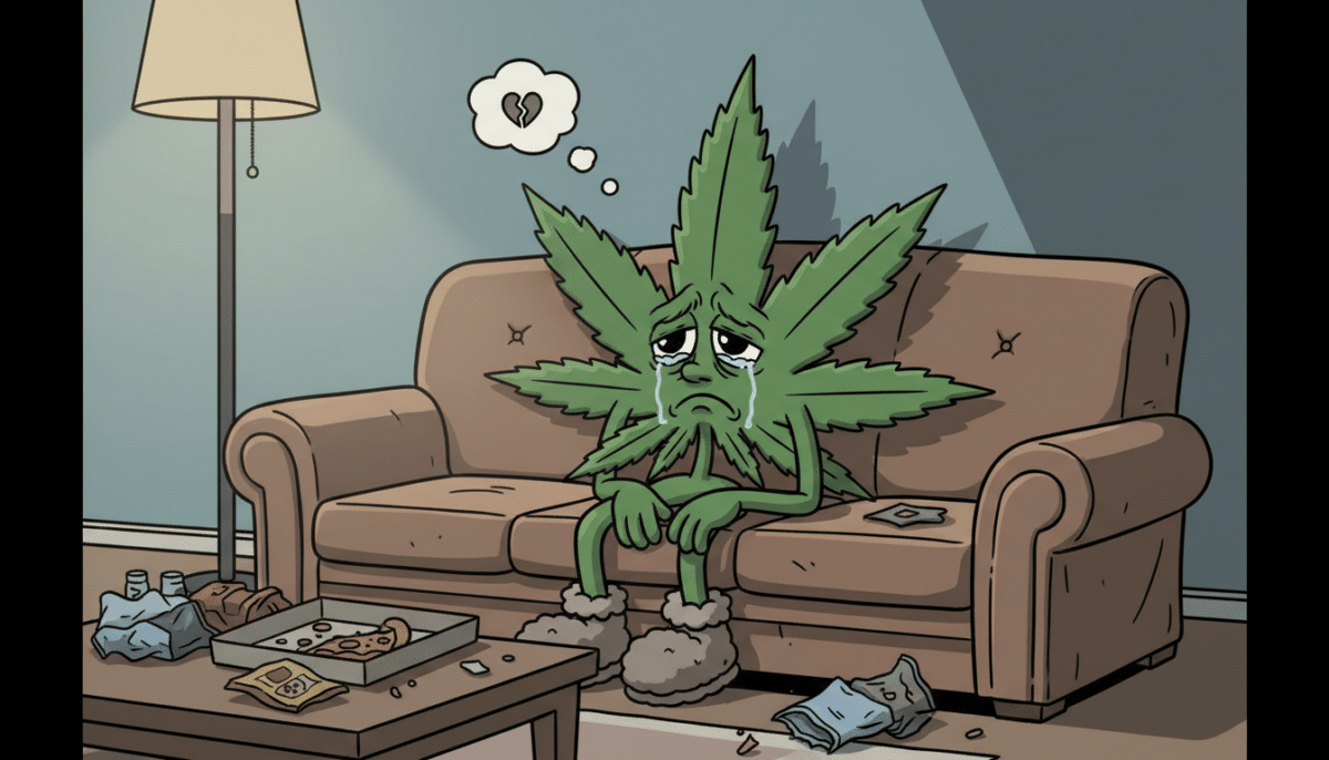 Retro illustration of a relaxed adult smoking cannabis indoors, representing adult cannabis use and modern relaxation culture.